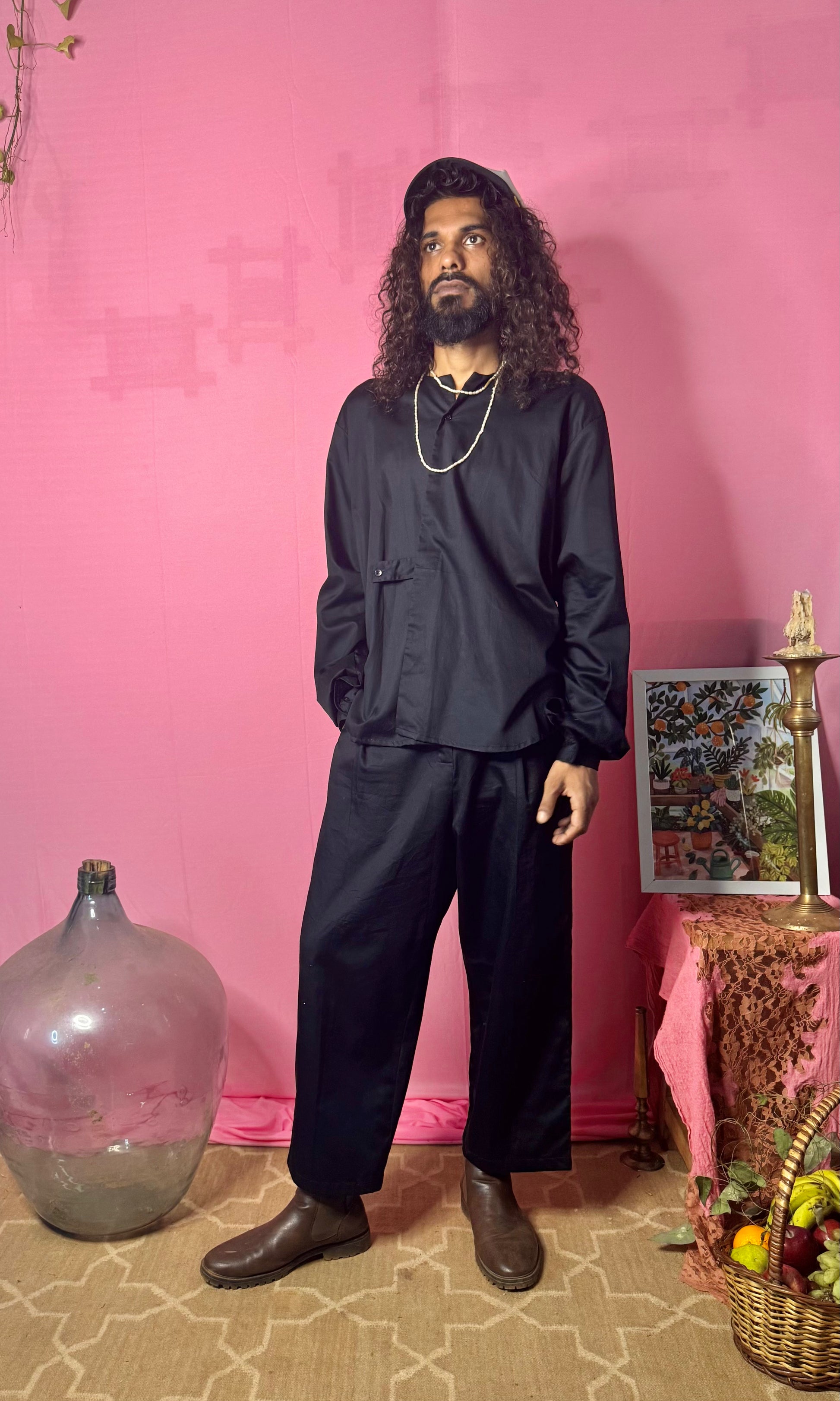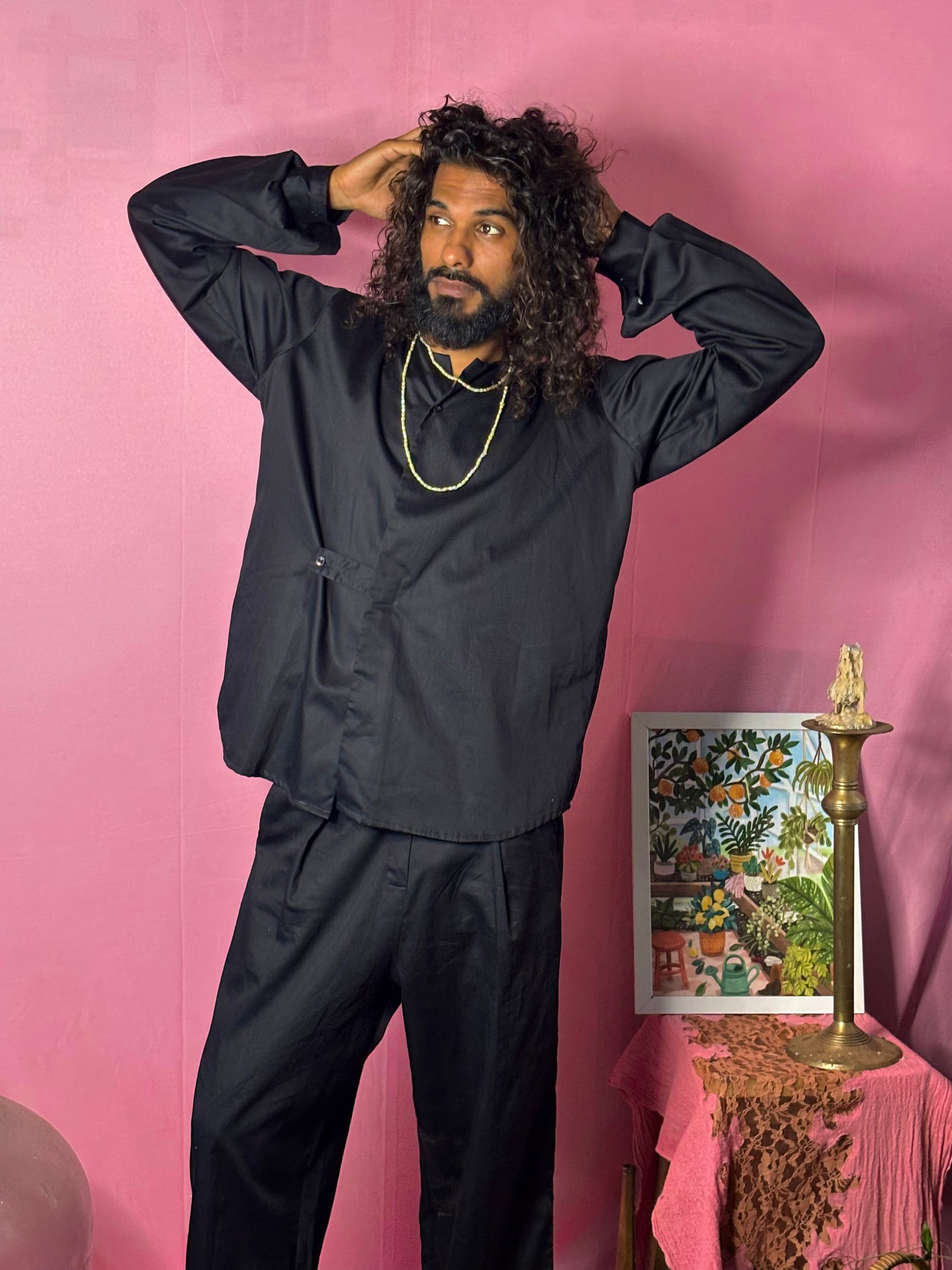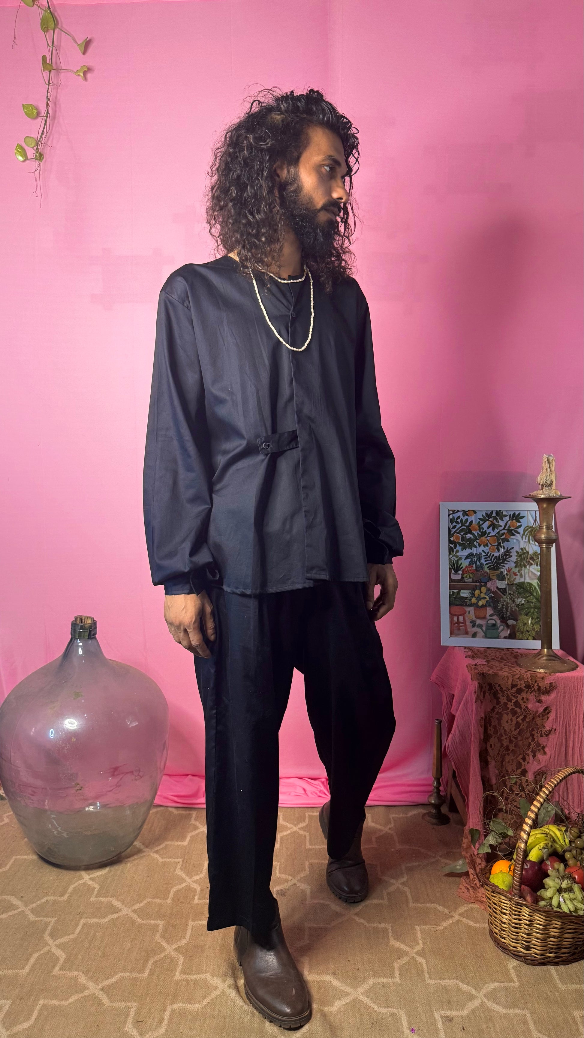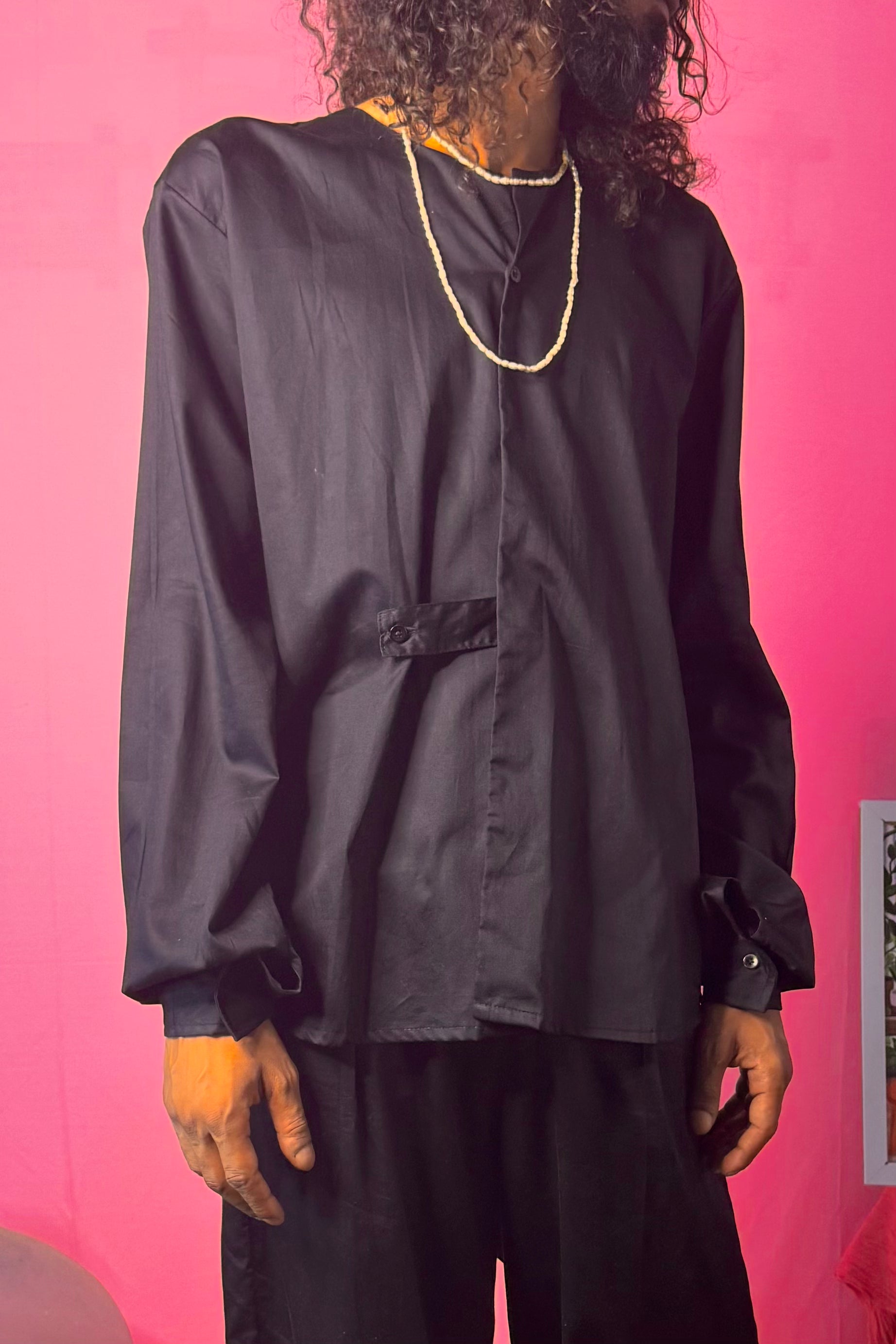 Elevate your style with this premium cotton boxy full-sleeve Korean shirt featuring a sleek two-button design. Perfect for a smart casual look, it offers a comfortable fit with a modern, minimalist edge.